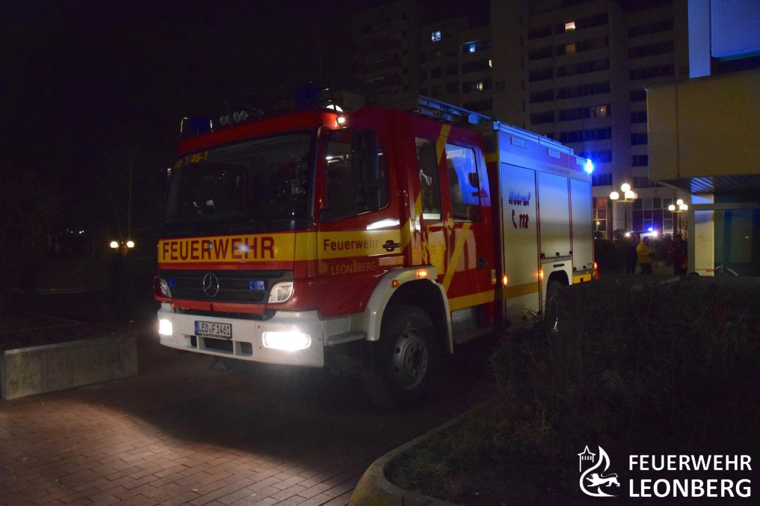 Die Feuerwehr Leonberg wurde durch die Brandmeldeanlage in ein Hochhaus in der Neukölner Straße alarmiert. Auf Grund von Meldungen über starke Rauchentwicklung und über offene Flammen im dritten Obergeschoss erhöhte der Einsatzleiter noch auf der Anfahrt die Alarmstufe von 2 auf 3. Dies bedeutet Vollalarm für die gesamte Feuerwehr Leonberg.