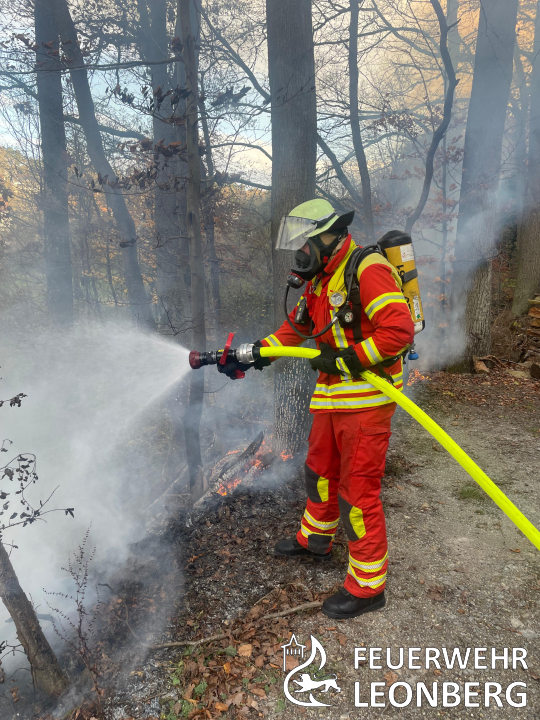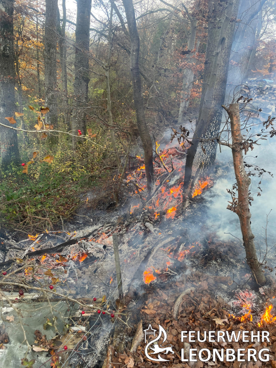 Die Feuerwehr Leonberg wurde in das Gebiet unterhalb des Waldfriedhofes alarmiert. Dort war ein "größeres Feuer" im Wald gemeldet.