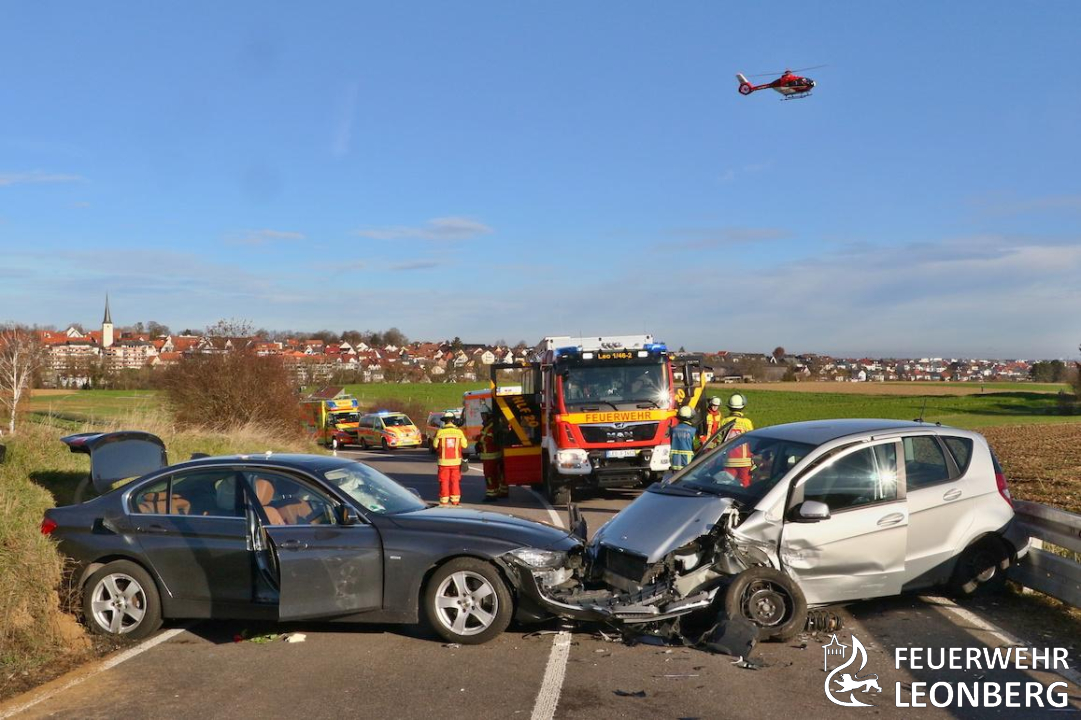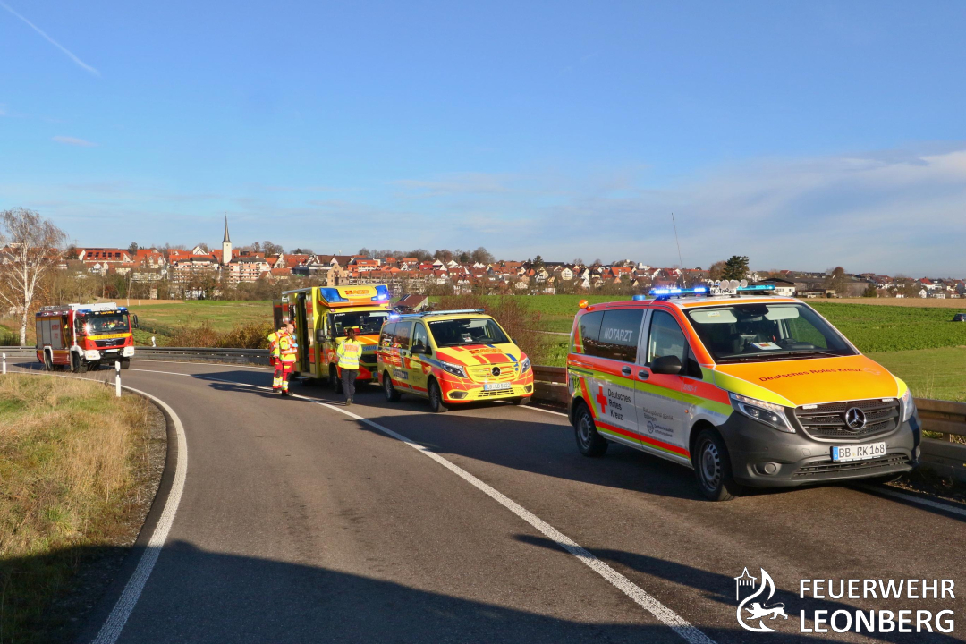 Die Feuerwehr Leonberg wurde zu einem Verkehrsunfall auf die Landesstraße 1136 in Richtung Höfingen alarmiert.