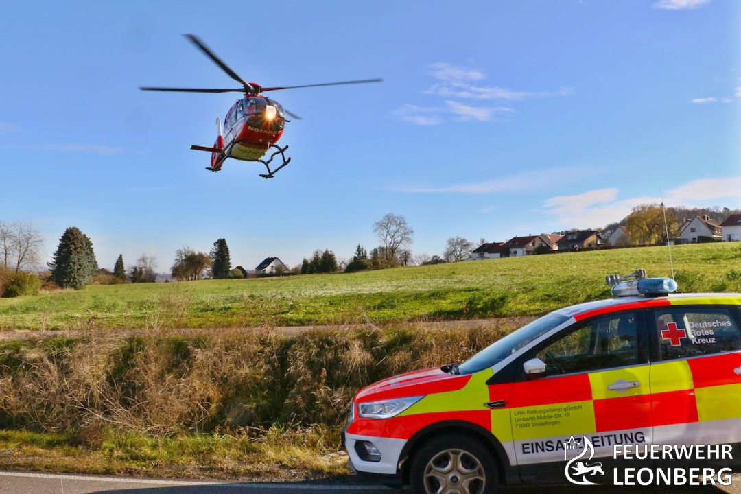 Datum: 27.11.2024 Alarmzeit: 11:15 Uhr Stichwort: Verkehrsunfall Einsatzort: Höfingen, Landesstraße 1136, Leonberg - Höfingen