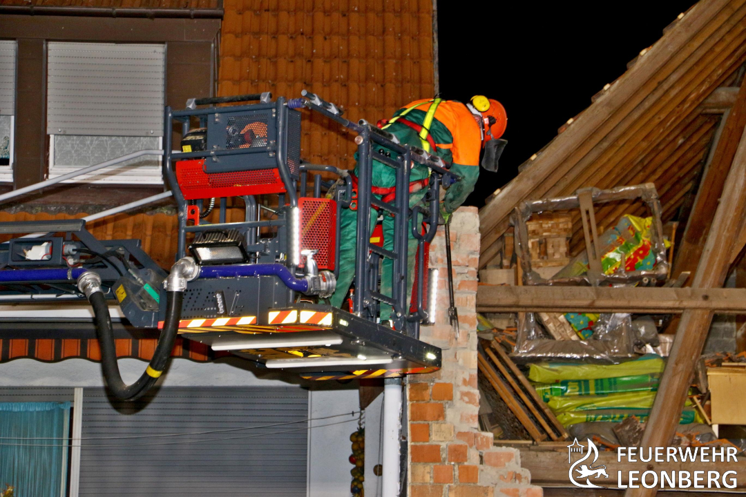 Die Freiwillige Feuerwehr Leonberg in die Ditzinger Straße in den Ortsteil Höfingen alarmiert. Dort hatten Nachbarn den Einsturz einer Scheune gemeldet.