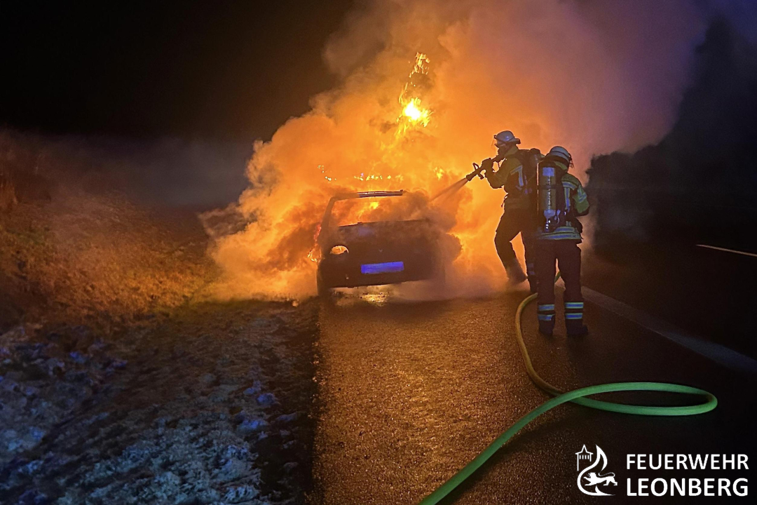 Die Freiwillige Feuerwehr Leonberg wurde auf die Autobahn 8 in Fahrtrichtung Karlsruhe alarmiert. Dort war ein brennender Personenwagen auf dem Standstreifen gemeldet.