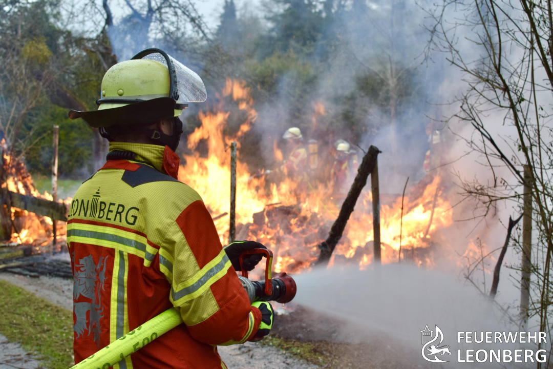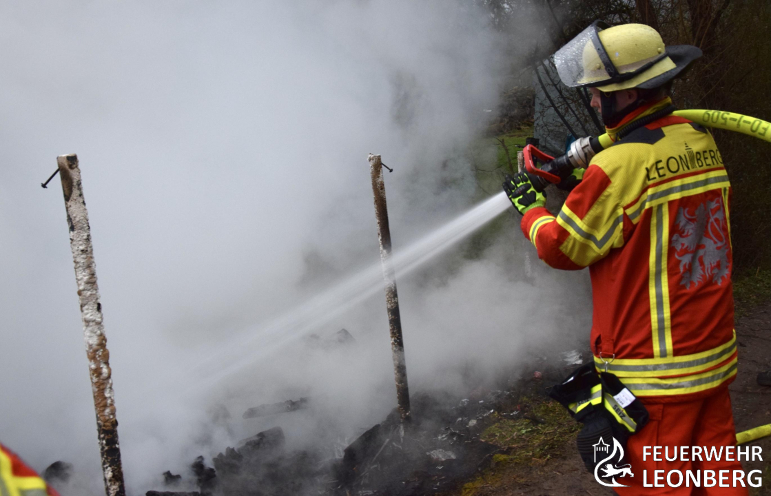 Beim Eintreffen der Einsatzkräfte stand eine etwa 5 × 3 Meter große Gartenhütte in Vollbrand.