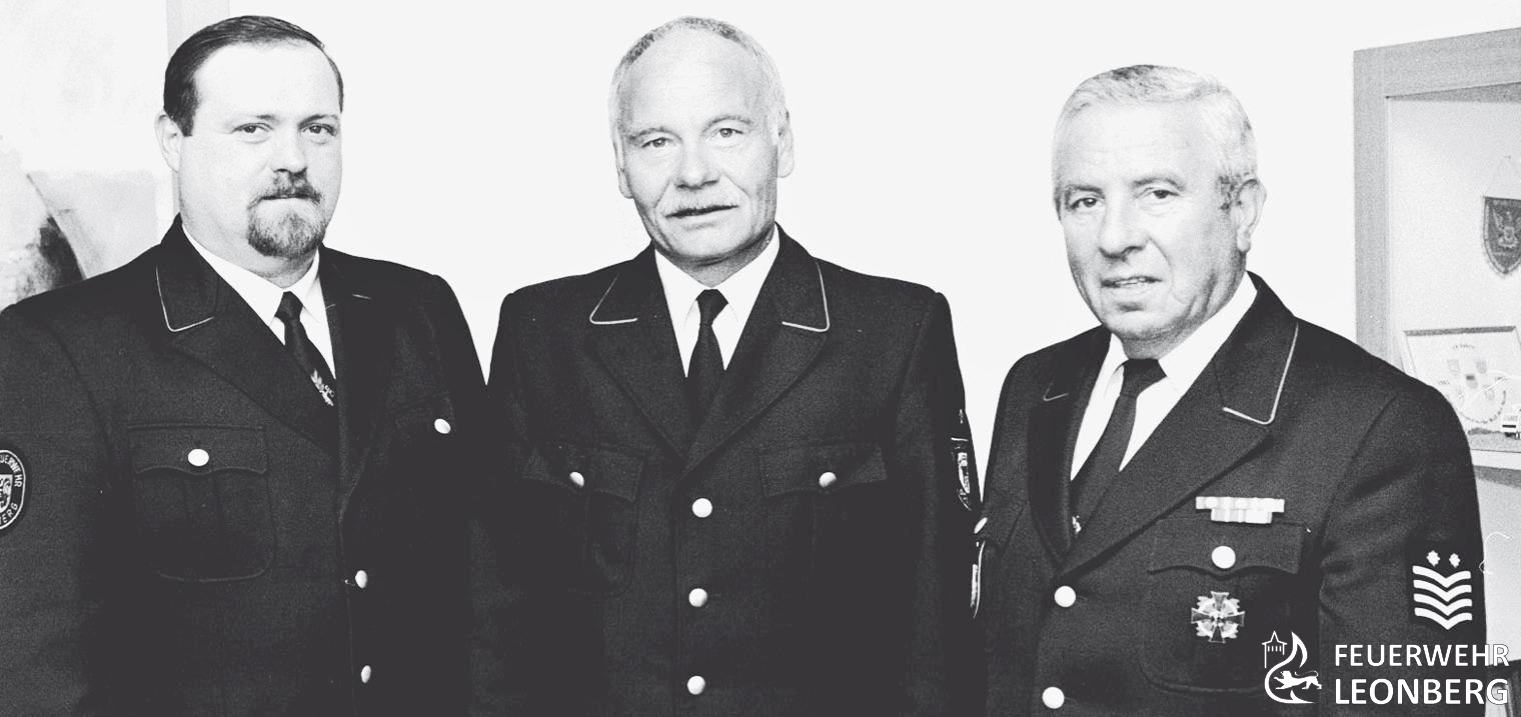 Auf dem Bild von 1998 ist er zu sehen mit dem damaligen Abteilungskommandanten Günter Widmaier (links) und Kreisbrandmeister Helmut Feil (mitte).