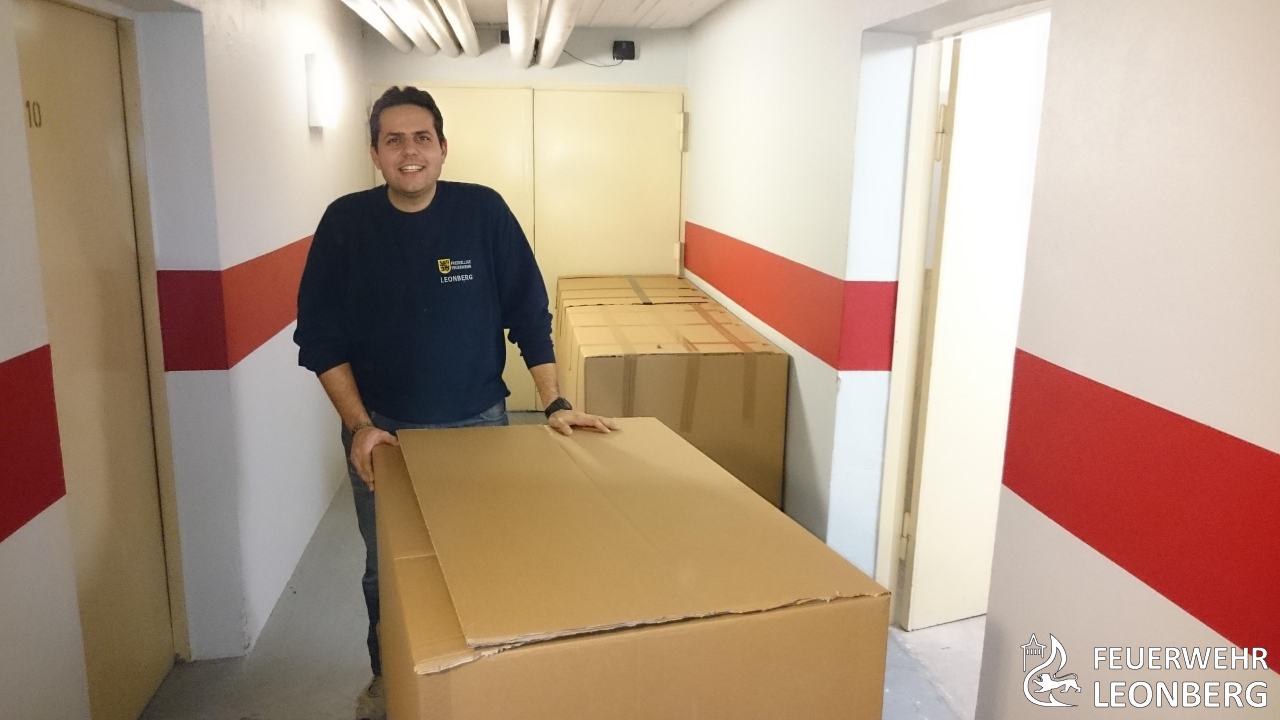 Damit die freiwilligen Feuerwehrleute aus Samos im kommenden Sommer besser vorbereitet sind, sind am Freitag, 19.12.2014 drei Europaletten beladen mit etwa 80 Einsatzjacken, Einsatzkoppeln und Beile von der Freiwilligen Feuerwehr Leonberg auf die Reise nach Samos gegangen.