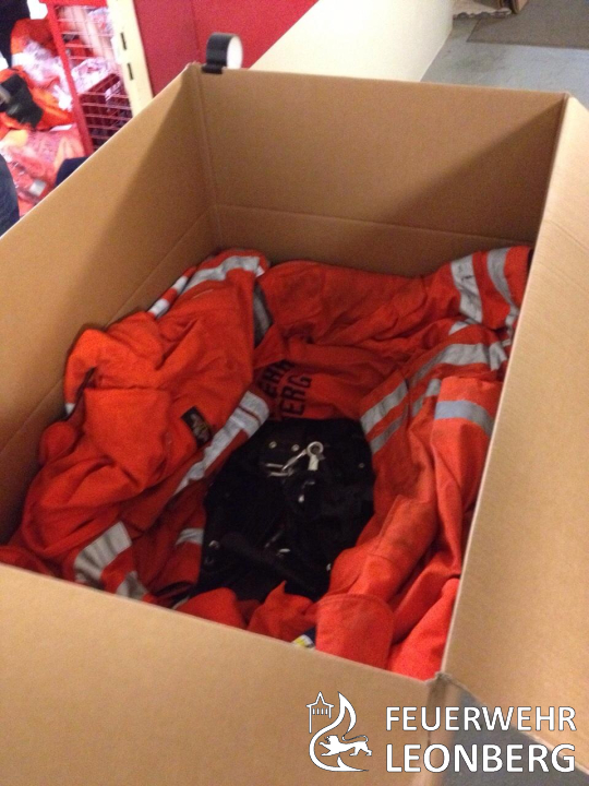 Wie wir in der Vergangenheit berichtet hatten, haben wir das Privileg neue und sicherere Einsatzjacken mit unserem Leonberger Löwen auf dem Rücken bekommen. Was sollen wir aber mit der alten Schutzkleidung machen? Entsorgen, weil sie in Deutschland nicht mehr Stand der Technik sind?