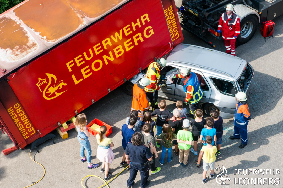 Das Kinderferienprogramm der Stadt Leonberg war in der Kalenderwoche 33 zu Gast bei den Hilforganistationen. Die Organisationen des THW, DRK und Feuerwehr erklärten den Kindern wie diese Aufgebaut sind.