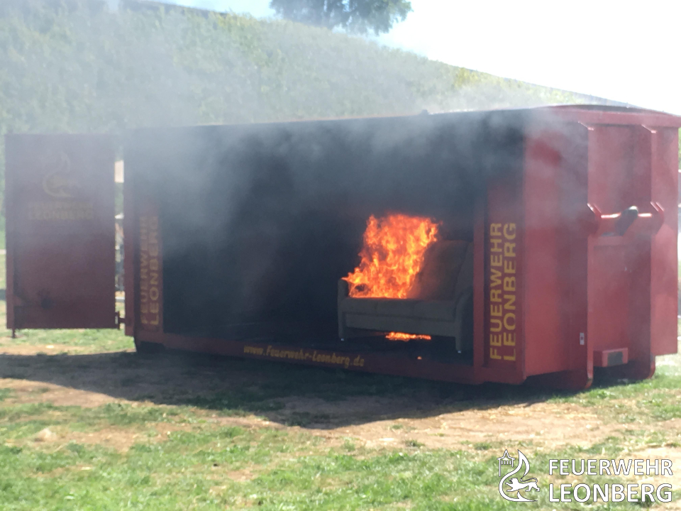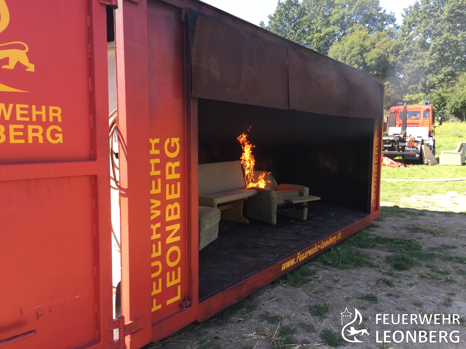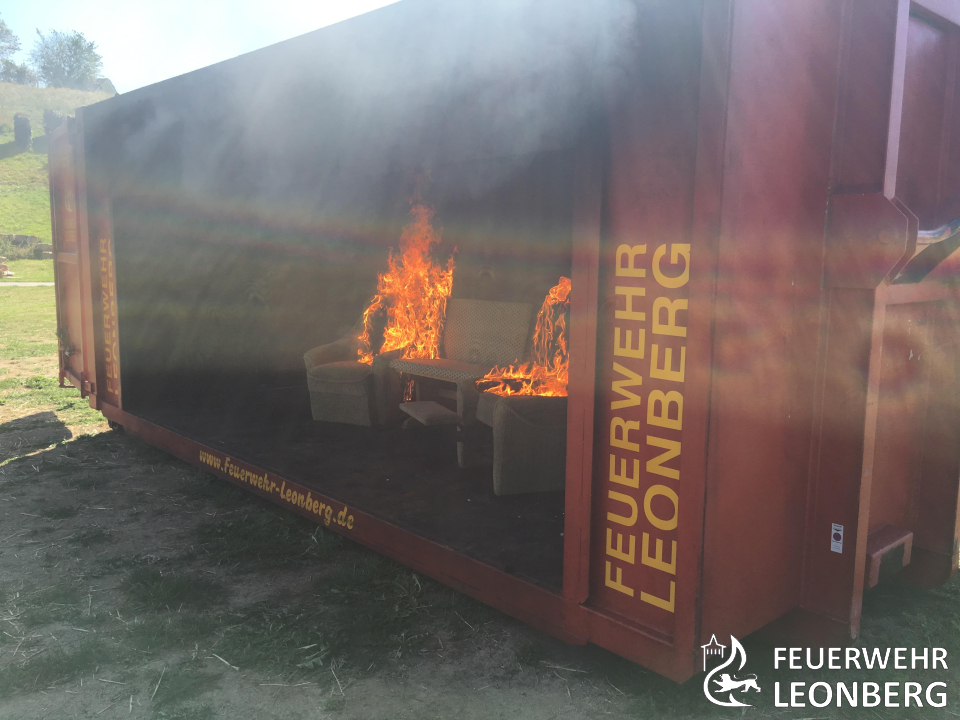 Die Feuerwehr Leonberg folgte gerne der Einladung der Feuerwehr Öhringen und stellte an diesem Tag ihren Brandcontainer zur Verfügung. Es wurden zusammen mit der Freiwilligen Feuerwehr Bretzfeld über den ganzen Tag verteilt Übungen im Brandcontainer durchgeführt. Dafür wurde für ein Wohnzimmer, mittels einer Kerze, entzündet. Die Bürgerinnen und Bürger konnten sich davon überzeugen wie schnell es doch zu einem Brand mit verheerenden Folgen kommen kann. "Rauchmelder retten Leben", dies wurde den Zuschauern schnell bewusst, da der Rauchmelder innerhalb von wenigen Sekunden Alarm geschlagen hat und somit das Feuer noch in seiner Entstehungsphase erkannt werden konnte. Die Feuerwehr Bretzfeld bekämpfte im Anschluss vorbildlich den bereits voll ausgedehnten Brand innerhalb des Containers. Dies zeigte den zahlreichen Zuschauern eindrucksvoll das die bereits 2015 eingeführte Rauchmelderpflicht in Baden-Württemberg durchaus seine Berichtigung findet und Leben retten kann.