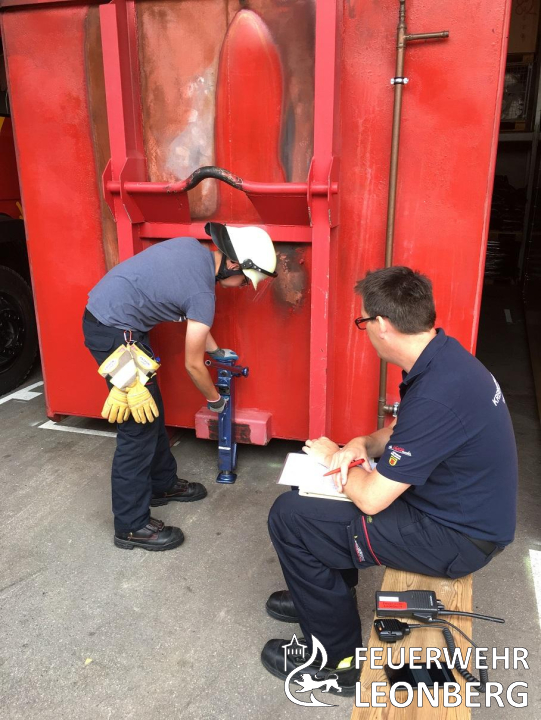 Zum Lehrgangsende erfolgt bei der Feuerwehr stets auch ein Leistungsnachweis, welcher am 28. Juli in der Feuerwache Leonberg stattfand. Es musste ein schriftlicher Teil mit 30 Fragen bestanden werden. Im praktischen Bereich wurden an fünf Stationen Knoten und Stiche, technische Hilfe, das Absichern von Einsatzstellen, Erste Hilfe und das Setzen eines Standrohres abgefragt.