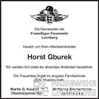 Unser Alterskamerad Horst Gburek aus der Abteilung Leonberg, ist am Freitag, den 31.08.2018 im Alter von 77 Jahren verstorben.