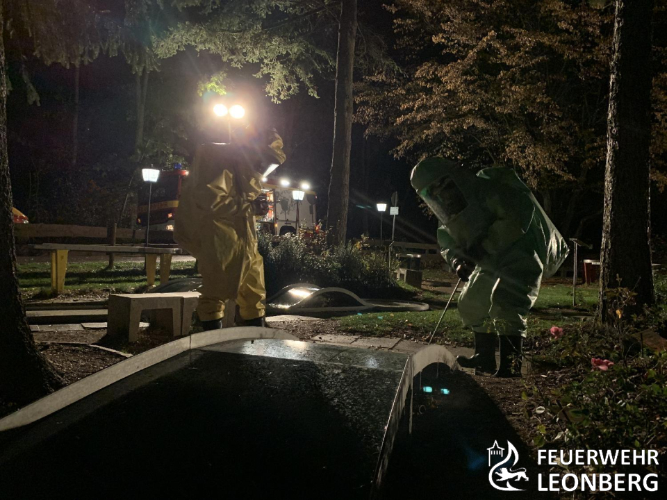 Der Grund ist einfach. Der Gefahrgutzug der Feuerwehr Leonberg trainierte für den Ernstfall. Bei einem Gefahrgutunfall mit gefährlichen Stoffen und Gütern müssen zum Eigenschutz Chemikalienschutzanzüge (CSA) getragen werden. Die Anzüge sind gasdicht und chemikalienbeständig. Allerdings sind die Bewegungsfreiheit und die Kommunikation stark eingeschränkt. Die Einsatzkräfte können in diesen speziellen Anzügen nur mit Handzeichen oder über Funk kommunizieren.