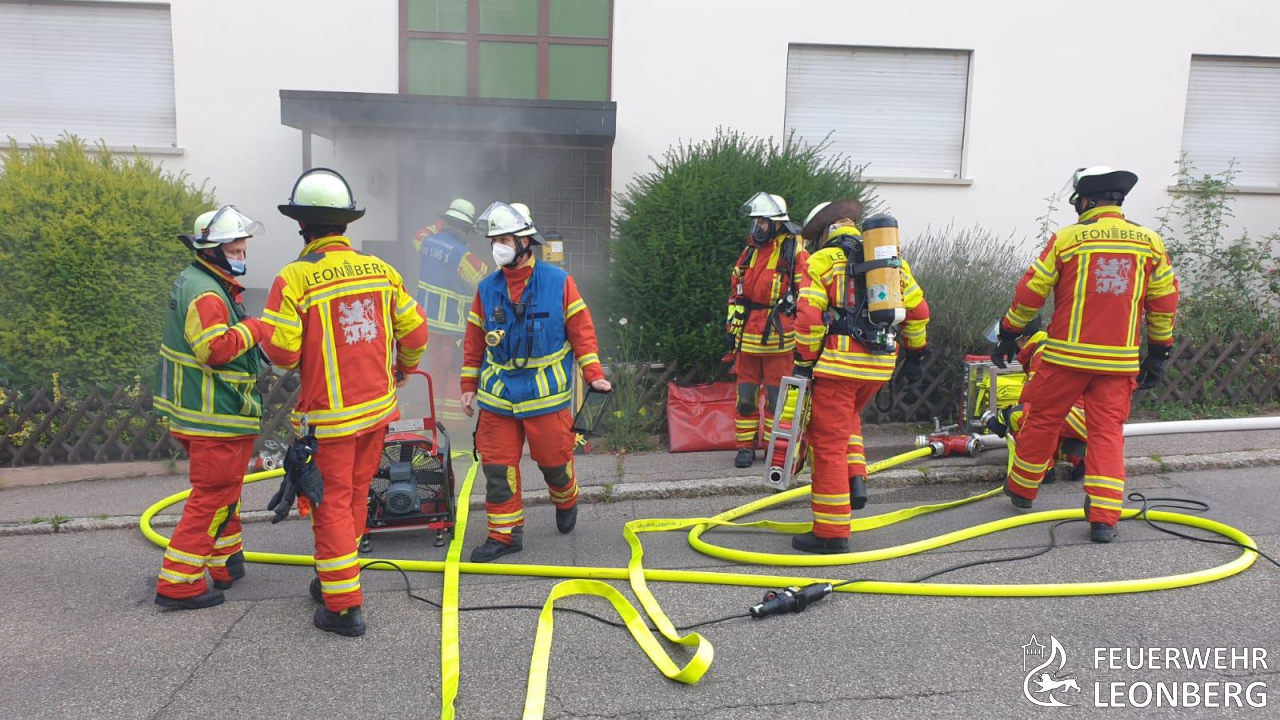 (js) Nach vielen langen Wochen mit Fortbildungen und Trainings im Corona-Modus in Kleingruppen, hat die Feuerwehr Leonberg nun endlich die Löschzugtrainings wieder aufnehmen können. Unter Beachtung aller staatlichen Vorgaben wurde ein Konzept ausgearbeitet und umgesetzt, welches Trainings wieder in der gewohnten Stärke eines Löschzugs ermöglicht. Zum Auftakt des Trainingsdienstes wurde der Feuerwehr Leonberg freundlicherweise Zugang zu einem leerstehenden Wohngebäude in Höfingen gewährt.