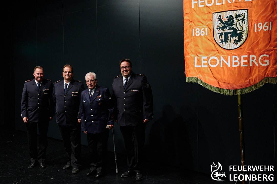 Eine weitere besondere Auszeichnung und auch ein Highlight des Abends war die Ehrung von Siegfried Röckle für 60 Jahre Mitgliedschaft bei der Feuerwehr Leonberg. Nicht nur weil die Laudatio von seinem Sohn Volker Röckle, selbst Abteilungskommandant der Feuerwehrabteilung Leonberg, gehalten wurde. Sondern auch aufgrund der bemerkenswerten Laufbahn und des Geleisteten von Siegfried Röckle. Er war seit 1966 Gerätewart und von 1984 bis 1994 Abteilungskommandant in Leonberg. 1995 wurde er vom Gemeinderat der Stadt Leonberg zum Ehrenkommandanten ernannt. Siegfried war es auch, der Leonberg mit seinen Mitstreitern als anerkannten und bis heute bewährten Stützpunkt für die Atemschutzgeräteträgerausbildung des Landkreis Böblingen etablierte. (jk)