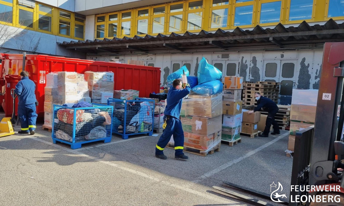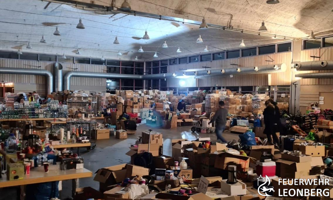 Zusammen mit dem THW-Ortsverband Leonberg, Mitarbeitern der Stadtverwaltung und ganz vielen privaten Helferinnen und Helfern, hat die Feuerwehr Leonberg von Freitag bis Samstag dieser Woche die Spenden angenommen, sortiert und mit Feuerwehrfahrzeugen und privaten Lastwagen zur Sammelstelle nach Sindelfingen gefahren.
