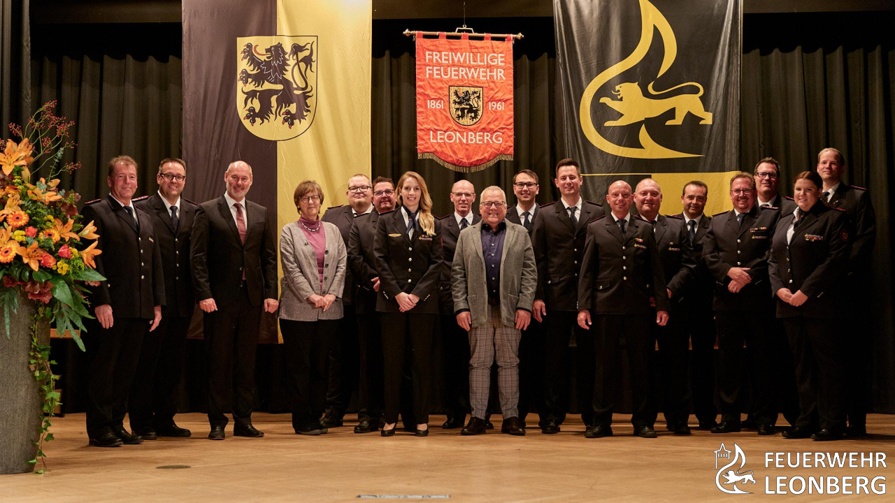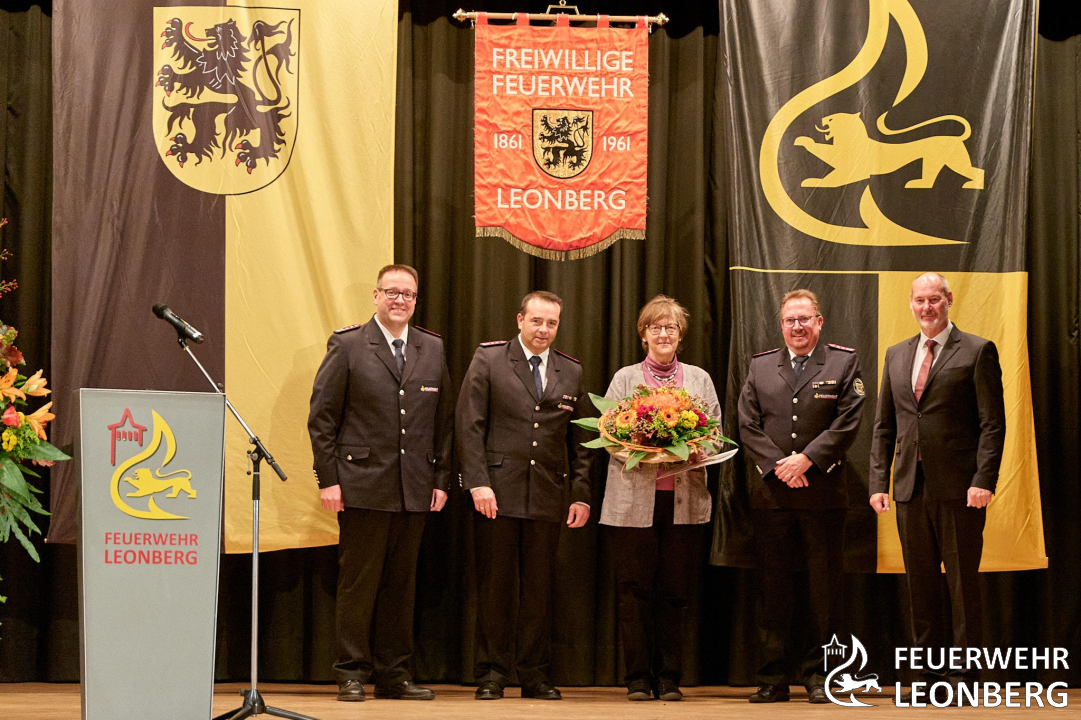 An diesem Abend wurden Mitglieder der Feuerwehr Leonberg für ihre besondere Verdienste, langjährige Zugehörigkeit in der Wehr und bei der Feuerwehrmusik ausgezeichnet. Als langjährige Wegbegleiterin der Feuerwehr wurde Frau Ingrid Röhling von der Stadtverwaltung zum Ehrenmitglied der Feuerwehr ernannt. Den Titel "Partner der Feuerwehr" wurde an zwei Leonberger Unternehmen für deren Unterstützung verliehen.