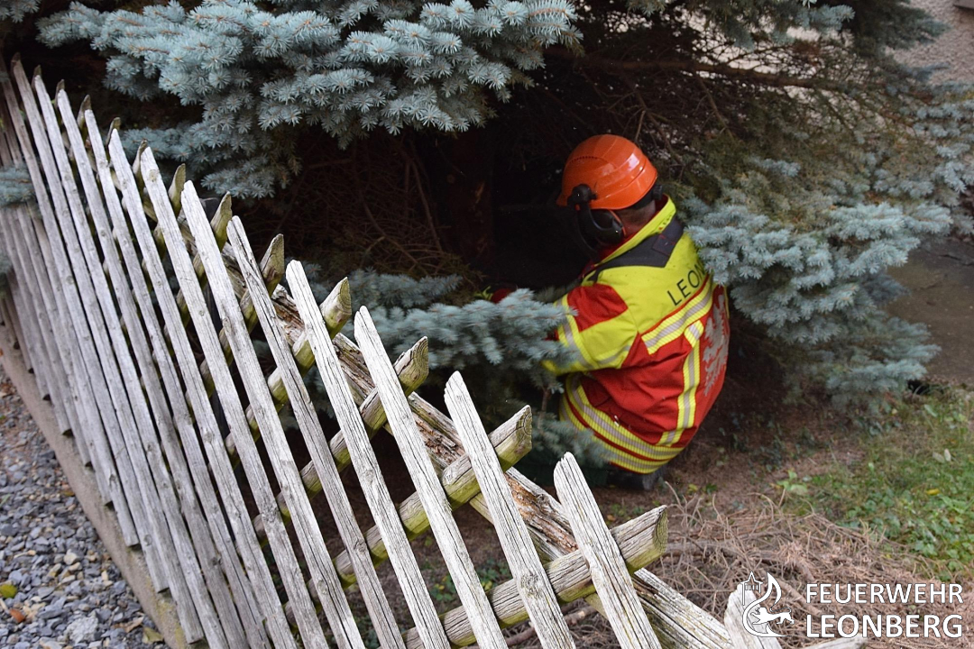 (mf) Einen besonderen Feuerwehreinsatz konnten Passanten am 17.11.2020 in der Feuerbacher Straße beobachten. Dort wurde nämlich eine gespendete Blautanne von zwei Feuerwehrleuten mit Hilfe des neuen Abrollbehälters-Kran aus einem Vorgarten gehievt, zur Feuerwache transportiert und auf das Dach der Fahrzeughalle gehoben.
