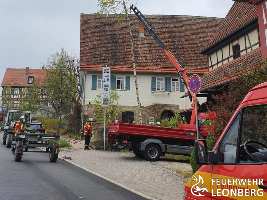 So trafen sich am Morgen des ersten Mai die Mitglieder des Ausschusses zum Maibaumstellen. Nach dem Fällen und Schmücken des Baumes im Wald, wurde dieser mit Hilfe eines Krans vor dem Bauernhausmuseum aufgestellt.