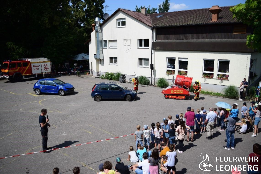 Frühmorgens wurde der Altar liebevoll geschmückt, und Jürgen Oettel leitete einen Gottesdienst im Freien. Nebenbei wurden verschiedene Fahrzeuge ausgestellt, darunter außer Dienst gestellte Drehleitern aus Leonberg und Esslingen, das THW, die Werkfeuerwehr Mercedes-Benz aus Sindelfingen mit ihrem Lüfter 2 für schnelle Entlüftung großer Fabrikhallen, sowie die Werkfeuerwehr Bosch aus Reutlingen mit ihrem Universallöschfahrzeug (ULF). Selbstverständlich war auch die Feuerwehr Leonberg mit ihrem Wechselladerfahrzeug (WLF), AB-Hygiene, AB-Tunnel, TLF 3000 und Luftunterstützungsfahrzeug (LUF 60) vertreten.