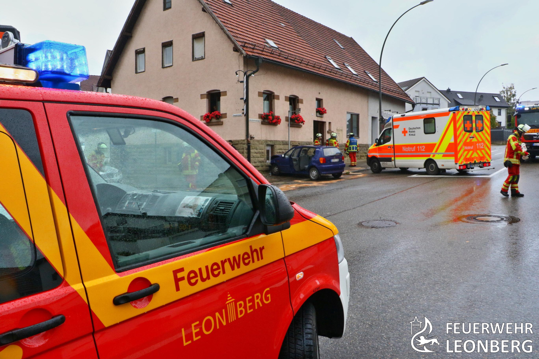 Die Feuerwehr Leonberg wurde zu einem Verkehrsunfall mit einer eingeklemmten Person nach Leonberg Eltingen in die Ezachstraße alarmiert.