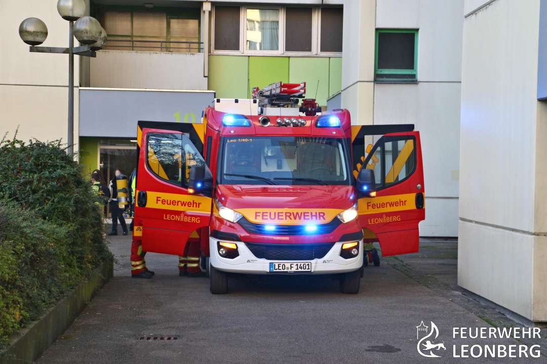 Die Feuerwehr Leonberg wurde mit einem 3BI Alarmcode und der Meldung, in einem der oberen Geschosse schwarzer Rauch und Flammen sichtbar, zu den Hochhäusern in die Neuköllner Straße alarmiert.