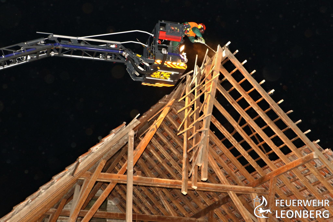 Die Freiwillige Feuerwehr Leonberg in die Ditzinger Straße in den Ortsteil Höfingen alarmiert. Dort hatten Nachbarn den Einsturz einer Scheune gemeldet.