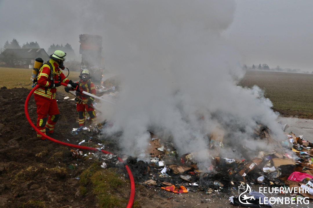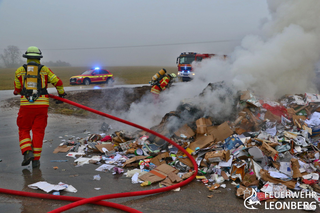 Die Freiwillige Feuerwehr Leonberg wurde zu einem Brand eines Müllfahrzeugs auf der Landesstraße L1137 zwischen Leonberg und dem Abzweig Gerlingen alarmiert.
