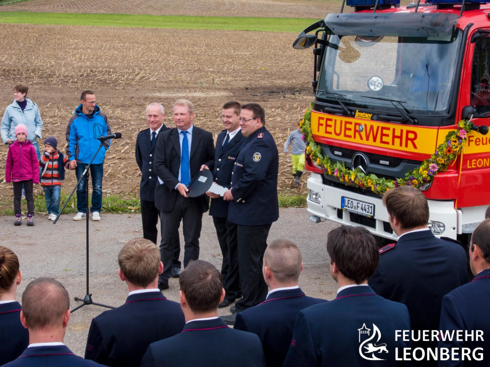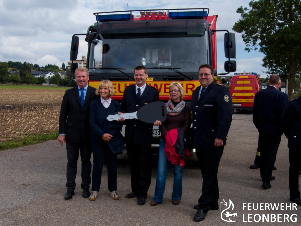 Unter den vielen Gästen waren auch einige Ortschafts- und Gemeinderäte, sowie der Kreisverbandsvorsitzende Markus Priesching und Kameraden aller Abteilungen der Feuerwehr Leonberg. Nach einer kurzen Ansprache übergab der Erste Bürgermeister Dr. Vonderheid den symbolischen Schlüssel an den Kommandanten Wolfgang Zimmermann. Dieser reichte ihn gleich der zuständigen Abteilungsführung aus Warmbronn Bernhard Spreiter und Steffen Bräunig weiter.