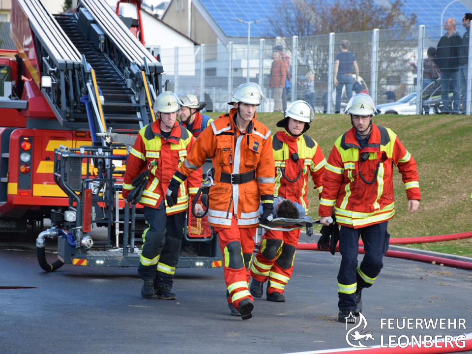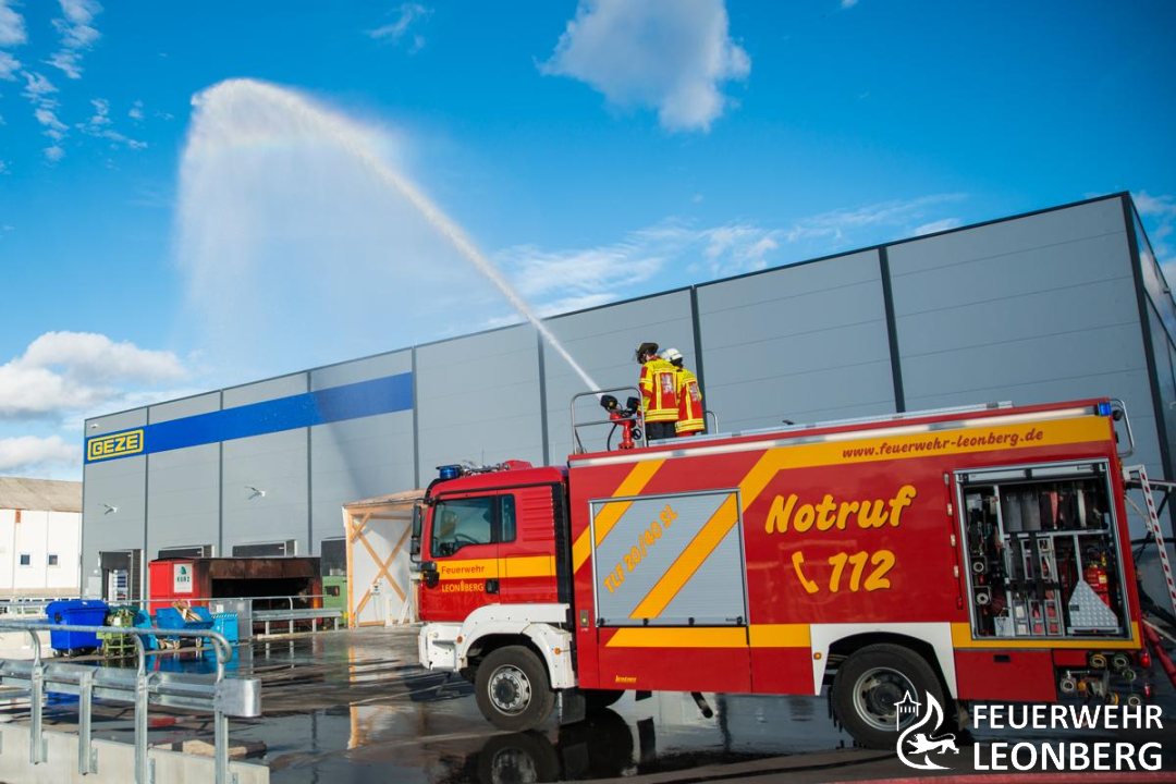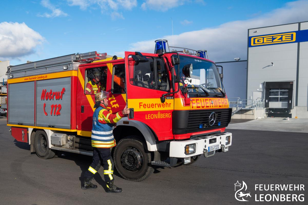 Am Samstagnachmittag veranstaltete die Freiwillige Feuerwehr Leonberg eine Großübung bei der Firma GEZE, zu der auch die Bevölkerung eingeladen war. Circa 350 Besucher beobachteten vom Betriebsparkplatz aus das interessante Geschehen, welches sich aus folgendem Übungsszenario entwickelte: