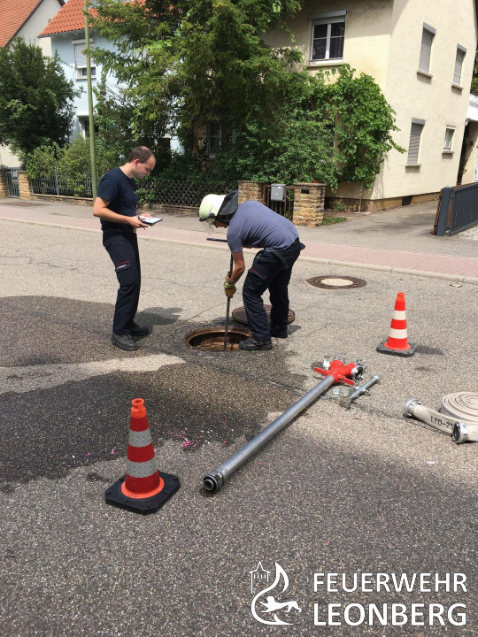 Zum Lehrgangsende erfolgt bei der Feuerwehr stets auch ein Leistungsnachweis, welcher am 28. Juli in der Feuerwache Leonberg stattfand. Es musste ein schriftlicher Teil mit 30 Fragen bestanden werden. Im praktischen Bereich wurden an fünf Stationen Knoten und Stiche, technische Hilfe, das Absichern von Einsatzstellen, Erste Hilfe und das Setzen eines Standrohres abgefragt.