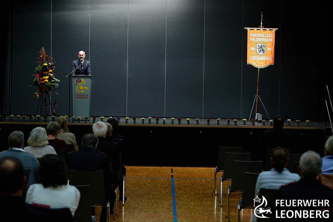 "Die Feuerwehr Leonberg ist schon was Besonderes" Mit diesen Worten eröffnete der Oberbürgermeister Martin Georg Cohn sein Grußwort. Er dankte den Feuerwehrkameraden und -kameradinnen für die zahlreichen, selbstlosen Einsätze. Sie sind es, die an 365 Tagen rund um die Uhr für die Bürger Leonbergs da sind. Dies kann nicht stark genug gewürdigt werden. Doch auch die Zusammenarbeit der Blaulichtorganisation, insbesondere im Rahmen des Katastrophenschutzeinsatzes beim Hochwasser im Ahrtal, sei grandios gewesen. Umso wichtiger ist und bleibt die kontinuierliche Investition in die Ausrüstung und Ausbildung der Feuerwehr, um die Leistungsfähigkeit stetig zu verbessern. Die Feuerwehr kann sich der vollen Unterstützung der Stadtverwaltung und des Gemeinderats sicher sein.