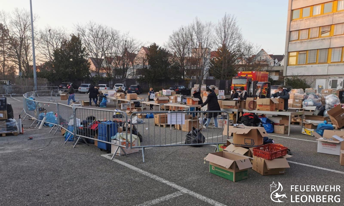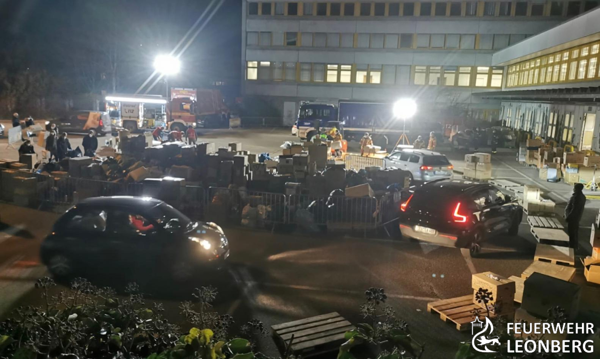 Zusammen mit dem THW-Ortsverband Leonberg, Mitarbeitern der Stadtverwaltung und ganz vielen privaten Helferinnen und Helfern, hat die Feuerwehr Leonberg von Freitag bis Samstag dieser Woche die Spenden angenommen, sortiert und mit Feuerwehrfahrzeugen und privaten Lastwagen zur Sammelstelle nach Sindelfingen gefahren.