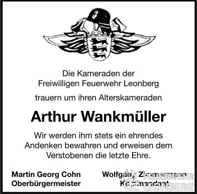 Trauernachricht Arthur Wankmüller