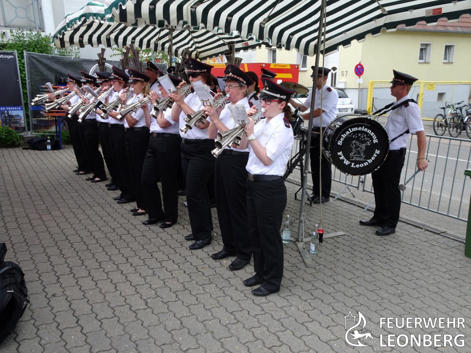 Für die musikalische Unterhaltung sorgt der Schalmeienzug der Feuerwehr Leonberg. (cp)