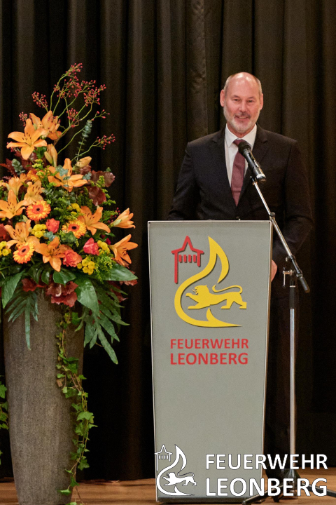 Herr Oberbürgermeister Cohn bedankte sich in seinem Grußwort bei den Feuerwehrmitgliedern für ihren unermüdlichen Einsatz für die Bürger der Stadt Leonberg.