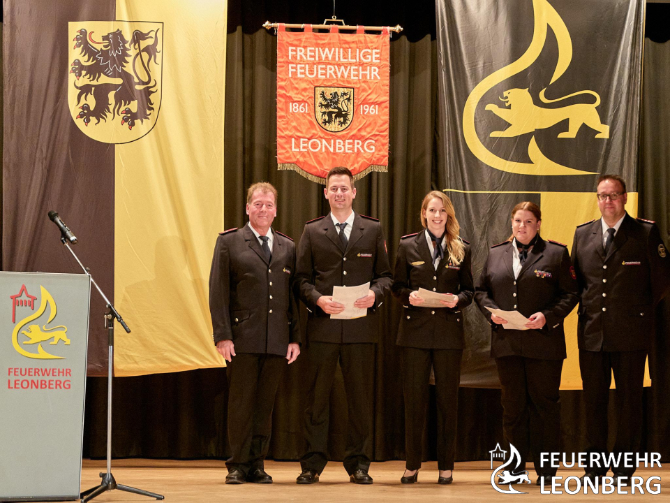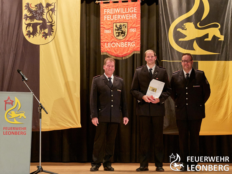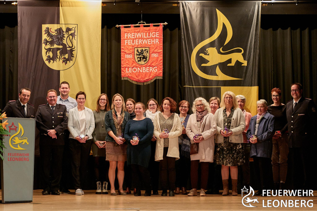 An diesem Abend wurden Mitglieder der Feuerwehr Leonberg für ihre besondere Verdienste, langjährige Zugehörigkeit in der Wehr und bei der Feuerwehrmusik ausgezeichnet. Als langjährige Wegbegleiterin der Feuerwehr wurde Frau Ingrid Röhling von der Stadtverwaltung zum Ehrenmitglied der Feuerwehr ernannt. Den Titel "Partner der Feuerwehr" wurde an zwei Leonberger Unternehmen für deren Unterstützung verliehen.