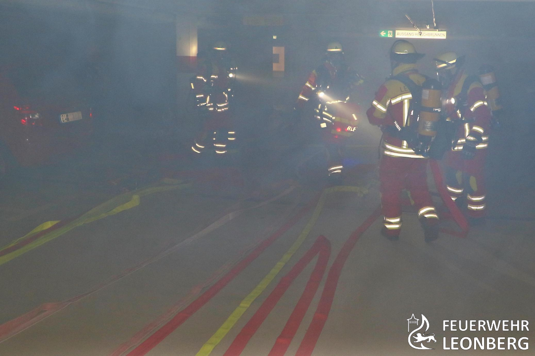 Am 12.11.2022 fand die diesjährige Hauptübung der Feuerwehr Leonberg in der Tiefgarage unter dem Marktplatz statt.
