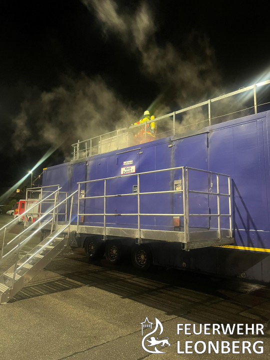 Zum Jahresende organisierte die Feuerwehr Leonberg eine mobile Übungsbrandanlage (MüB), um die Aus- und Fortbildung ihrer Atemschutzgeräteträger zu fördern. Rund 100 Feuerwehrleute aus Leonberg, der Umgebung und der Partnerfeuerwehr aus Kaltern-Markt nahmen an den Übungen teil, welche in der Leonberger Feuerwache stattfanden.